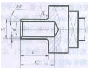(2)確定壓接接線螺栓長度和內(nèi)徑深度。由于黃銅H62導電性比紫銅差,需增大壓接面積及導電面積,因此為提高壓接、導電的可靠性,應(yīng)進行二次壓接,根據(jù)液壓鉗寬度,確定壓接接線螺栓長度L1,壓接接線螺檢內(nèi)徑深度L2,L2比L1略長。
