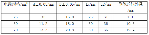(1)確定壓接接線螺栓內(nèi)徑和外徑。查閱電纜導體近似外徑并結(jié)合電纜導體實測數(shù)據(jù),依據(jù)電纜導體插入應(yīng)略緊且兼顧方便插入的原則,確定壓接接線螺栓內(nèi)徑d;依據(jù)壓接接線螺栓內(nèi)徑和電纜規(guī)格,計算推導壓接接線螺栓環(huán)形面積,根據(jù)JB/T 2436.2-1994標準,確定壓接接線螺栓外徑D。