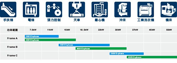 - 大慣量負(fù)載:離心機、工業(yè)洗衣機、粉碎機、龍門型工具機…等