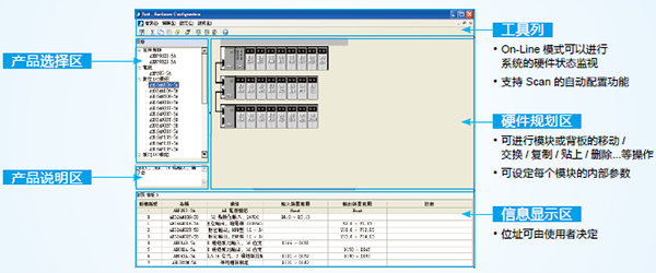 - 全方位整合:程序編輯 + 硬件規(guī)劃 + 網(wǎng)絡(luò)規(guī)劃 + 數(shù)據(jù)示波器與數(shù)據(jù)紀錄器 + 整合運動控制編輯