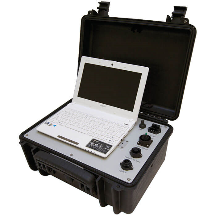 現(xiàn)場(chǎng)測(cè)試箱內(nèi)的儀表通過(guò)檢修箱進(jìn)行保護(hù)?,F(xiàn)場(chǎng)儀表的供電和信號(hào)輸入位于檢修箱內(nèi)的面板上。此外,其他測(cè)試模塊和筆記本電腦、電池和其他測(cè)試部件集成于箱子內(nèi)部。